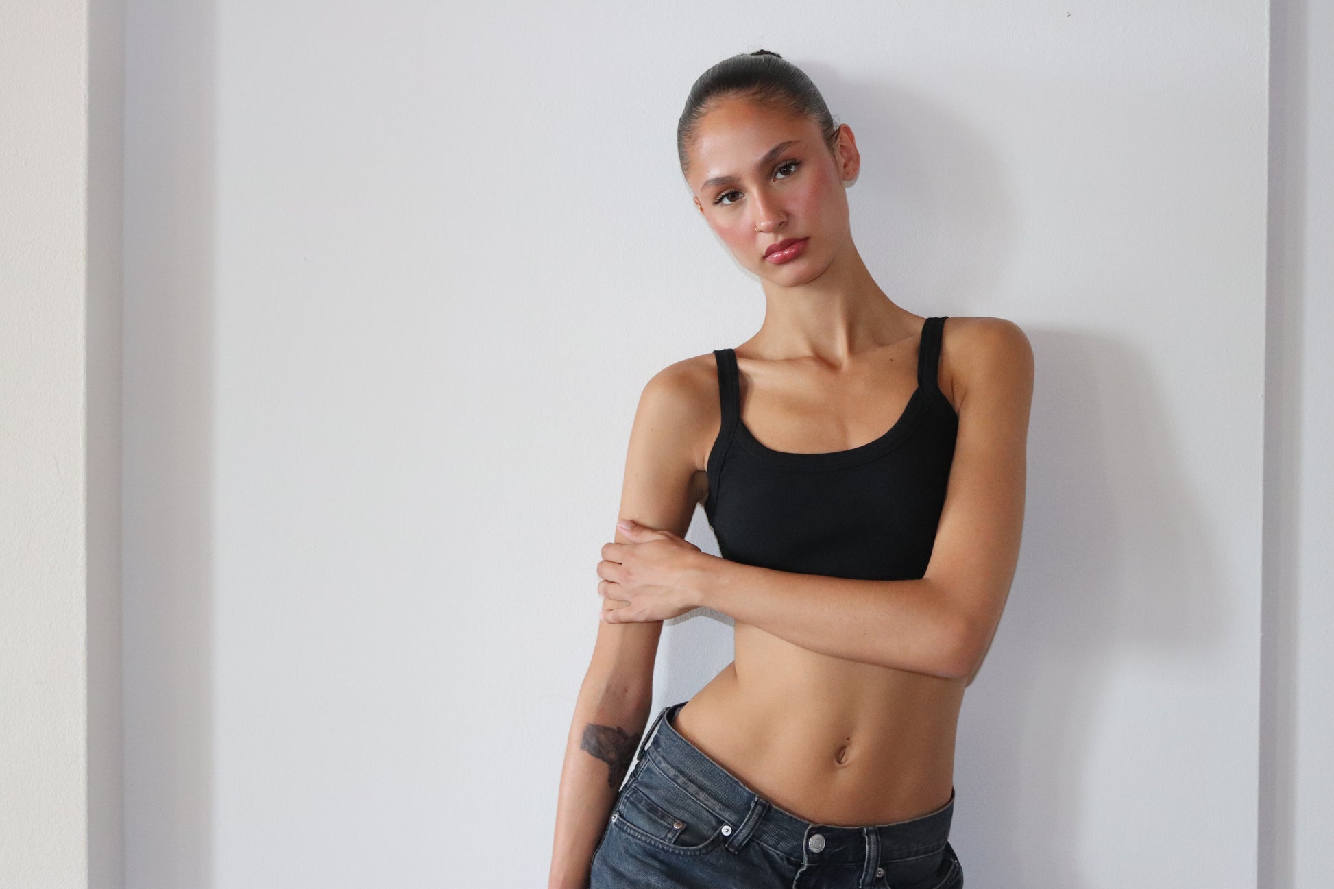 The Super Short Knit Tank Top is your go-to piece for effortless luxury and sophistication , designed for a woman who enjoys life's most glamorous moments — from rooftop soirées to yacht parties or beach gatherings in Bali. The super short length and knitted fabric made of cotton, rayon, and spandex ensure you stay cool and comfortable, even in the most exclusive and tropical destinations.